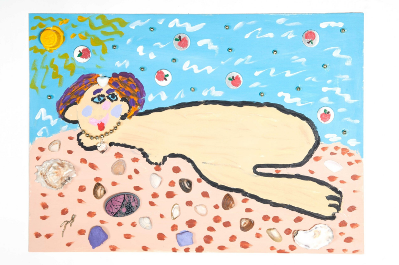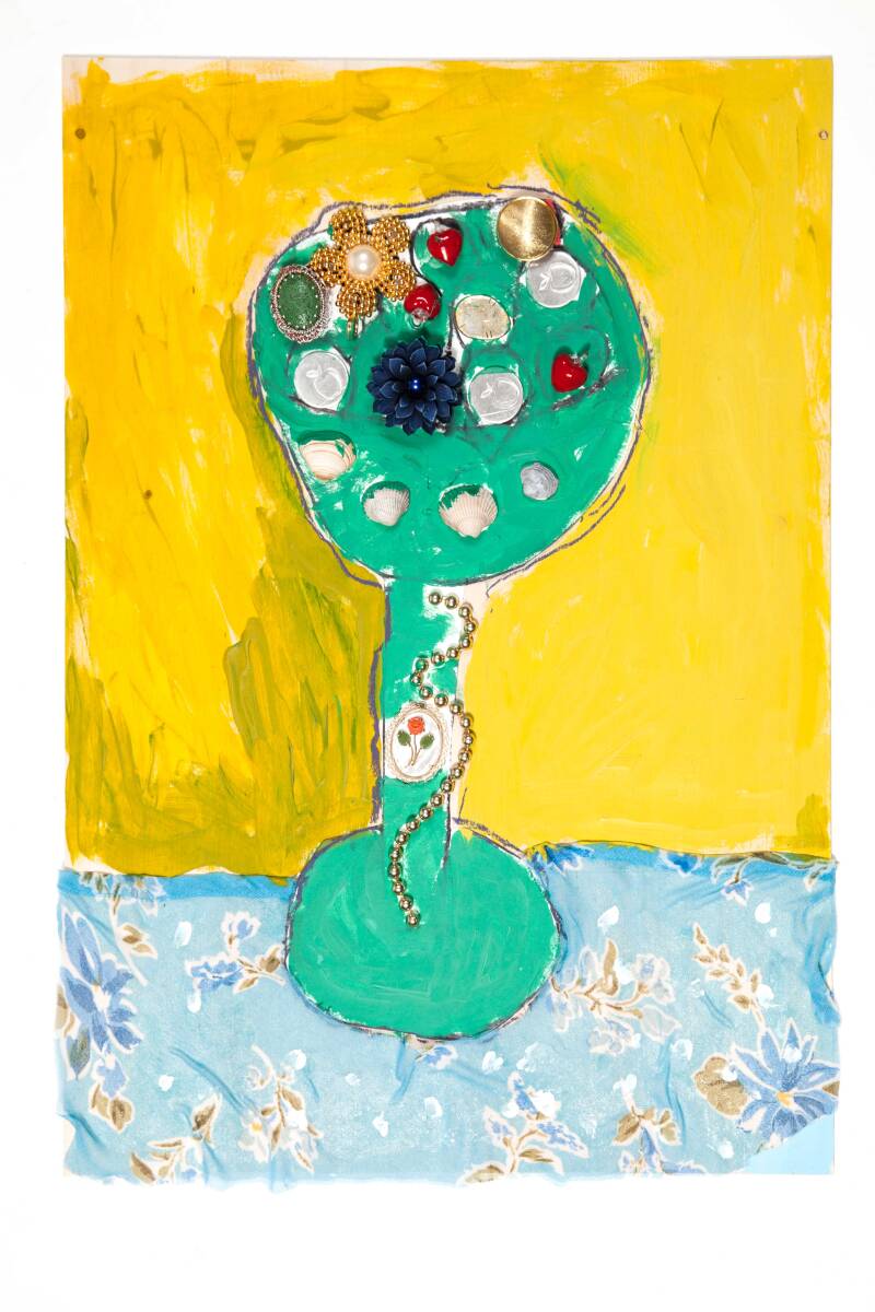 Teilnehmer*innen fertigten Assemblagen mit Unterschiedlichen Materialien, Objekten und Farbe auf Holzplatten